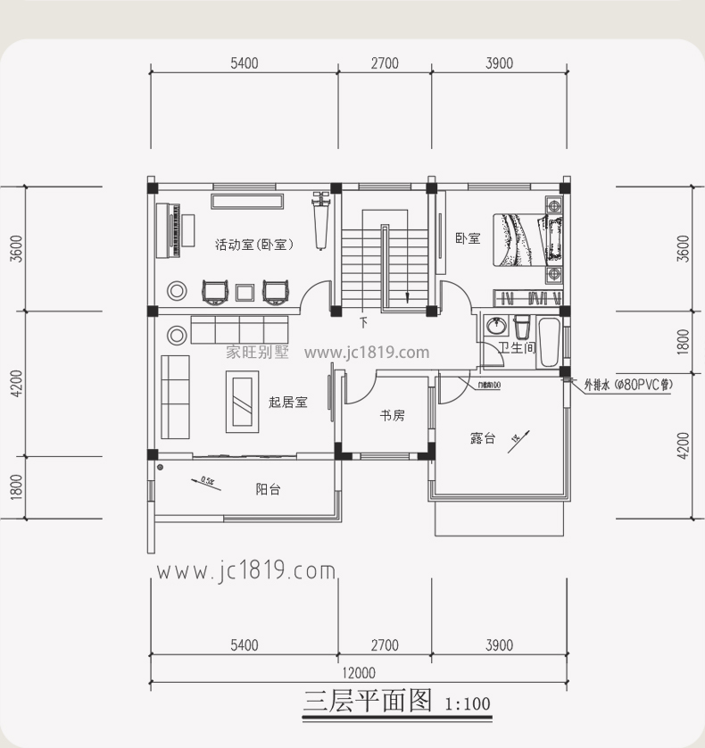 12×9.6米 三层中式别墅 占地面积 116平方 编号:202309281998