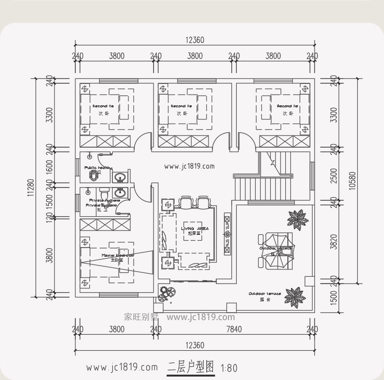 12.3×12.5米 两层欧式别墅带露台 占地143平方 编号:202309281687