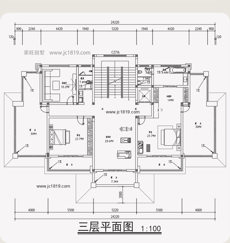 24.2×15.7米 五开间三层半新中式别墅 占地面积304.3平方 编号:202308091688