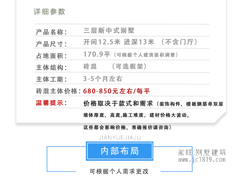 12.5×13米 三层新中式别墅 占地170.9平方 编号3128